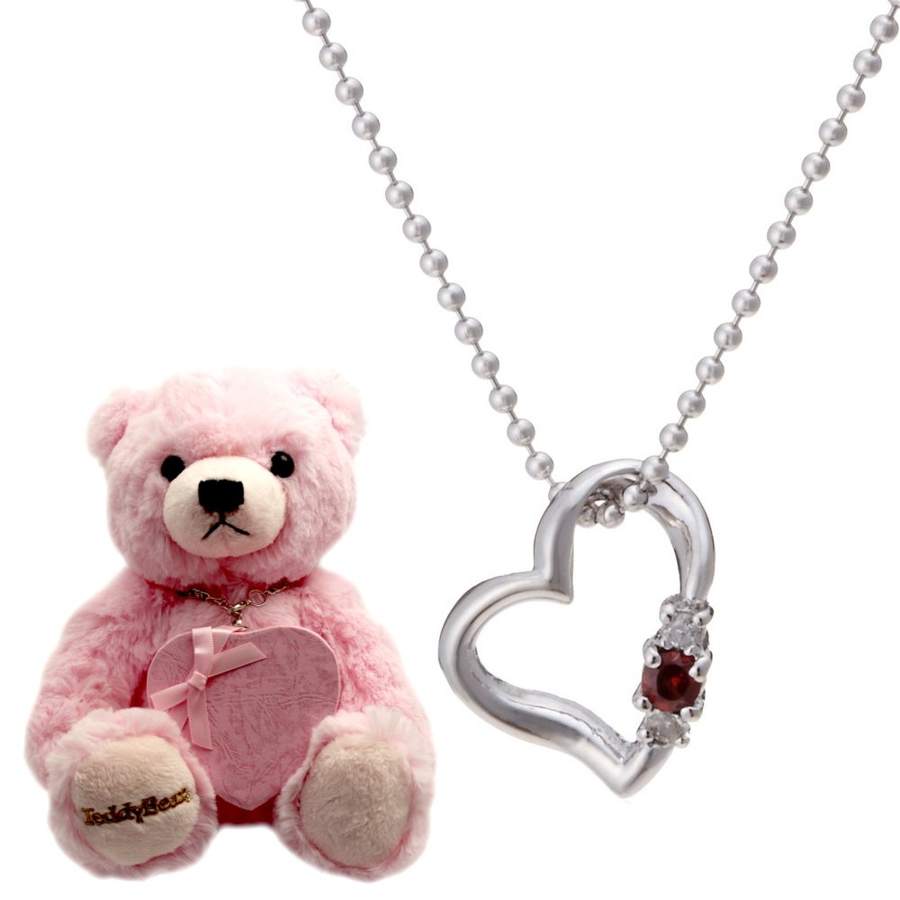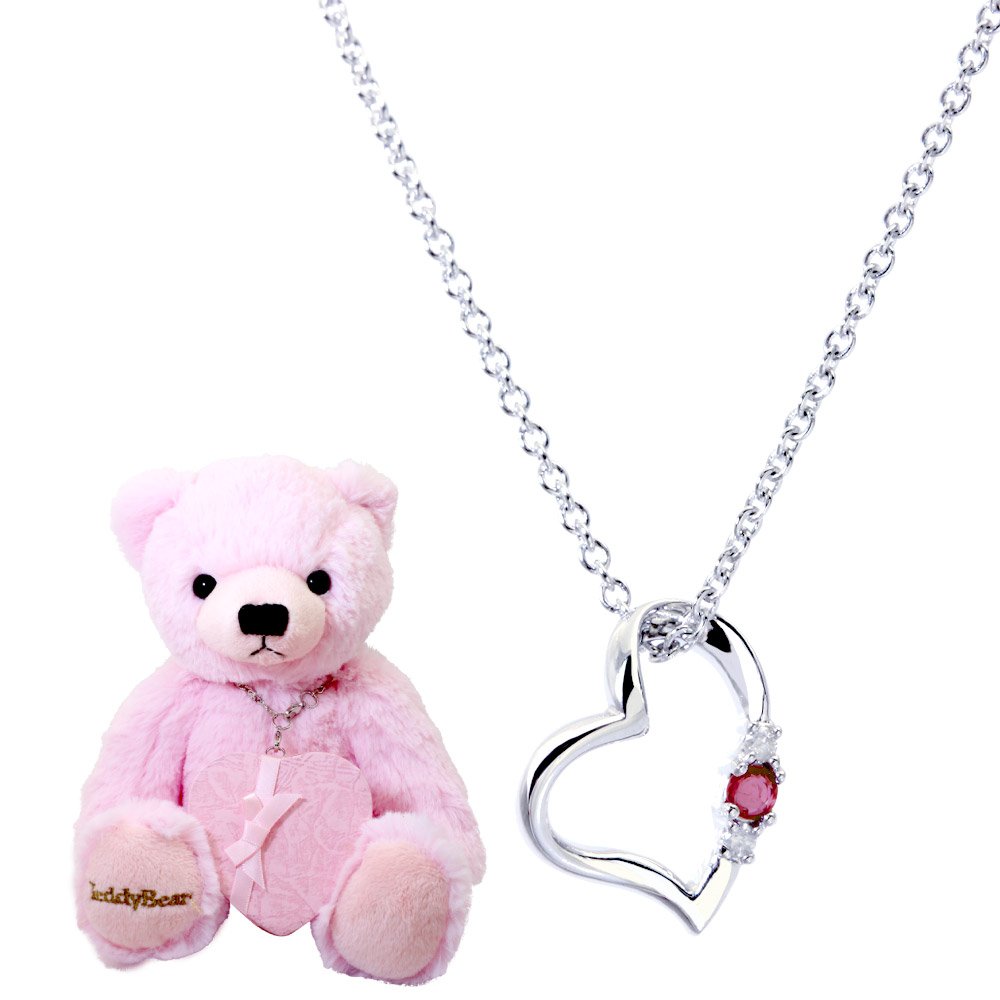 Deliver popular diamond love heart necklace with cute teddy bear!