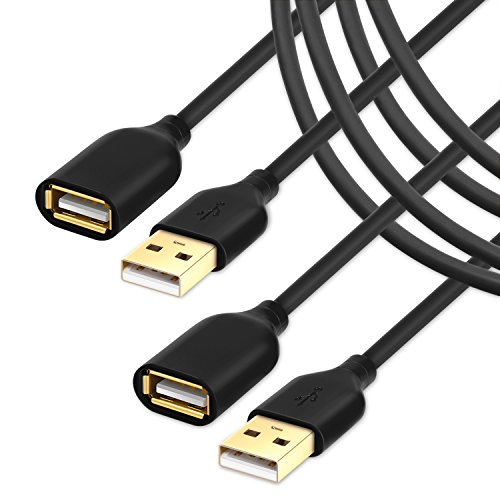 USB Cable Extension, Besgoods 2 Pack 6FT USB 2.0 Extension Cord Extender cable - A Male to A Female USB Extender Cord with Gold-Plated Connector - Black