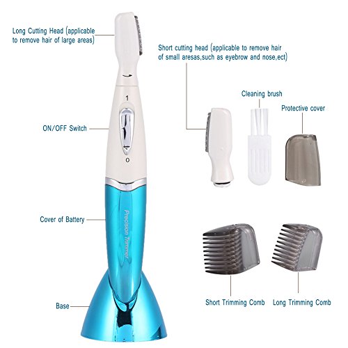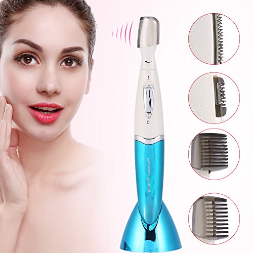 Lady Shaver, Waterproof Wet Dry Electric Cordless Hair Razor Trimmer Remover for Eyebrow Nose Ear Legs Bikini Area Armpit Body Face (Blue)