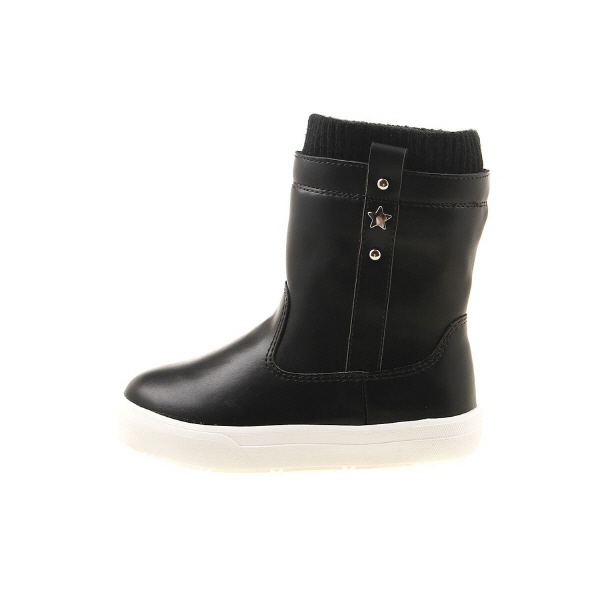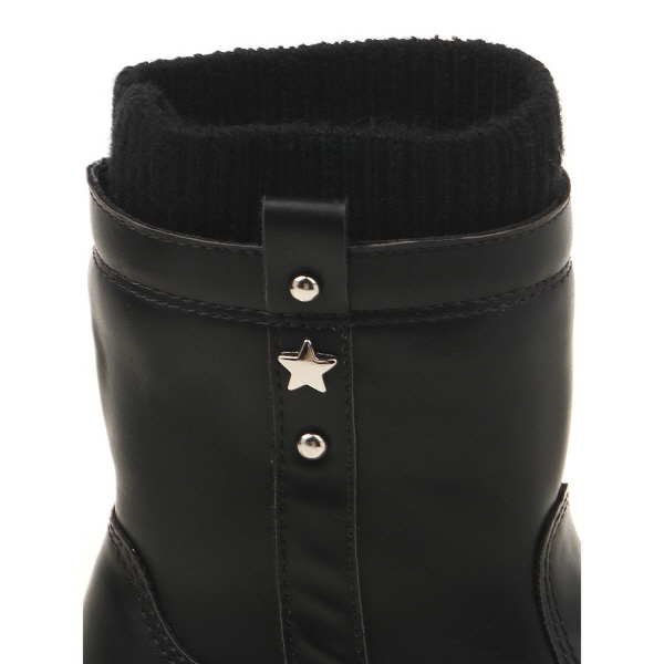 합성피혁소재에 니트 원단과 지퍼,별 장식으로 포인트를 준 심플한 스타일에 부츠