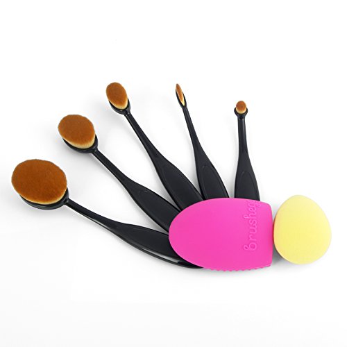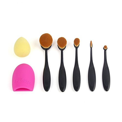 GIFT MAKEUP SET -- It comes with 5 oval makeup brushes,one very lovely soft makeup blender sponge puff and one makeup brushes egg,ideal for your girlfriend,daughter,niece,or other women friend as a gift.