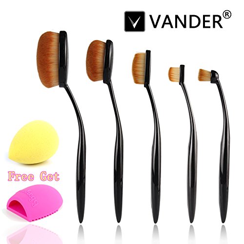 Vander 5 Pcs Oval Makeup Brush Set Professional Foundation Contour Concealer Blending Cosmetic Brushes (Black)+ 1pc Cleaning Glove MakeUp Brush...