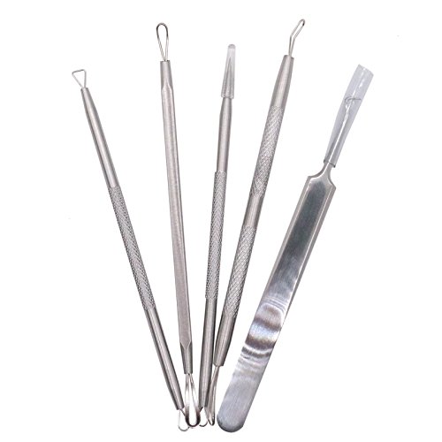 Includes one curved tweezer, one pimple needle and three various shaped loop tools.