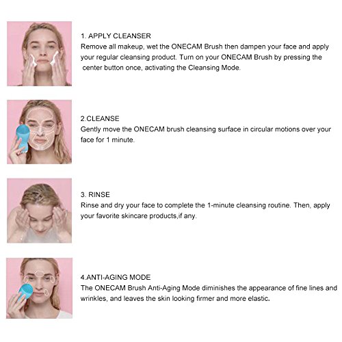 - ❤ 100% MEDICAL GRADE SILICONE MATERIAL-ONECAM electric face cleansing brush is made of medical grade silicone and special craft processing, it is super soft.You can using the front of face cleanser brush to cleans face and the back to massage in your serum. It can better penetrate into the pores of the skin, but also adopts the vibration, so as to better achieve the magical effect of cleaning and beauty.