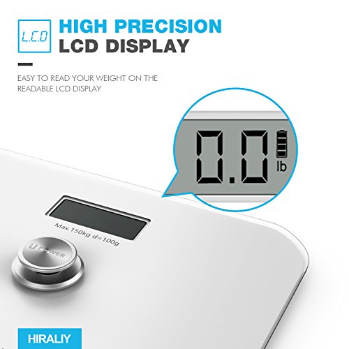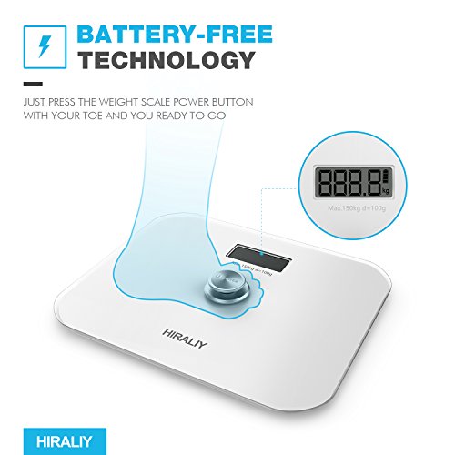 HIRALIY Digital Body Weight Bathroom Scale [No Batteries EVER] with LCD Display and Step on Technology 330lb/150kg (White)