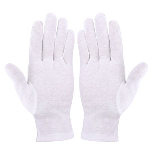Premium Materials: Made of soft cotton prevents irritation in even the most sensitive skin, touching soft and comfortable also. Quantity: Come with 10 pairs white cotton gloves (20 pcs work gloves), there are plenty more to use. One Size Fits Most: Fitted design with separately sewn thumb for the most comfortable fit for your hands. Washable and Reusable: Washable and reusable for daily use. Soft and lightweight that is quite comfortable to wear on night or working. Multiple Use: Thin work gloves are fit for material, matted photograph, archival and art handling, jewelry, sliver and coins inspections. Package Including 5Pairs Cotton Gloves 白色美容手套(5?一包 珠光袋打包) 0