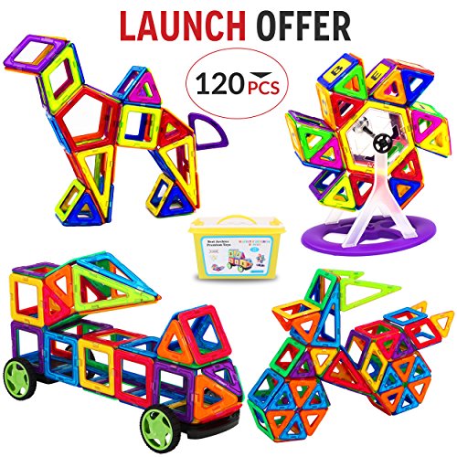 -. Title : Building Blocks 120 PCS Magnetic Blocks Stacking Tiles with Storage Box More Shapes in Dual Rainbow colors, Learning Educational magnet toys set by Best Archies