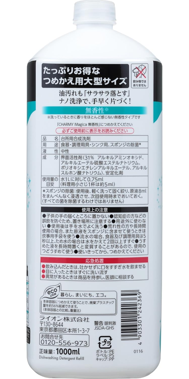 ■洗いはじめから油汚れを水のように「サラサラ落とせて」手早く片づく、ナノ洗浄の台所用洗剤です。