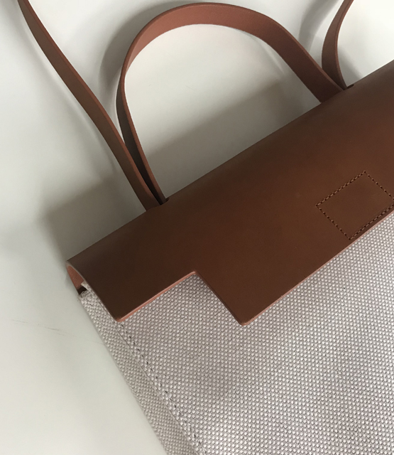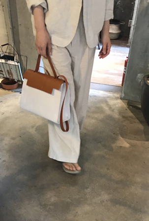 올이 굵은 고급 캔버스에 코팅하여 탄탄한 느낌을 주고, 3미리 두께의 수입 베지터블 레더로
