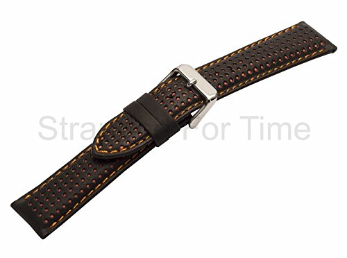 -. Binding : Watch -. Brand : Strapped For Time -. Department : Mens -. Feature : Very sporty padded calf watch band with contrast stitch. Made with genuine layered calfskin; bottom layer is colored and top layer is perforated to show color through holes. 5mm padding, great for most watches. / Men's regular length band 115/75mm (7-1/2"). Lug width is 22mm, buckle width is 20mm. / Removable stainless buckle; this strap may also be used with push button/butterfly style deployment clasp (sold separately) / Includes (1) set of double flange spring pins / Strapped For Time - offering high quality watch bands and accessories since 2004. All items ship from Charlotte, NC. This item is IN STOCK. -. Label : Strapped For Time -. Manufacturer : Strapped For Time -. MPN : PC100-03-22 -. PackageQuantity : 1 -. PartNumber : PC100-03-22 -. ProductGroup : Watch -. ProductTypeName : WATCH -. Publisher : Strapped For Time -. Studio : Strapped For Time -. Title : 22mm Perforated Padded Genuine Calfskin Watch Band with Orange Stitch and Padding