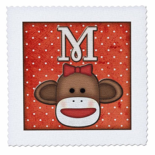 3dRose qs_102816_2 Cute Sock Monkey Girl Initial Letter M-Quilt Square, 6 by 6-Inch