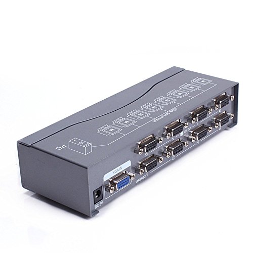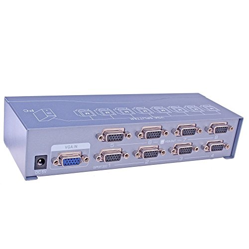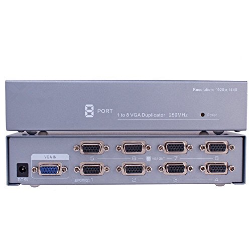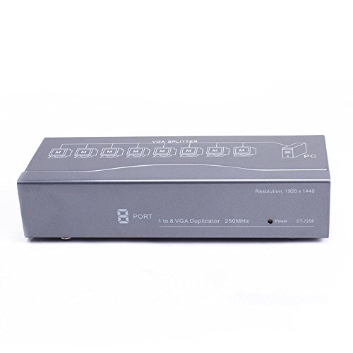 E-More® 8 Port VGA Video Splitter 1-to-8 Monitor VGA/SVGA LCD CRT 8 Port Video Splitter Box Display Distributor 250MHZ Support 1920x1440 Resolutions 40m Transmission for TV Computer