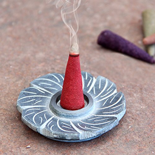 Incense Cone Burner Holder Natural Soapstone Hand Carved Floral Shape Meditation Home Fragrance Accessories