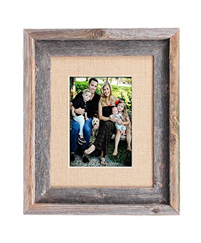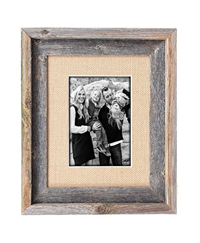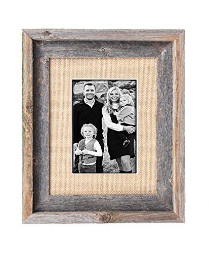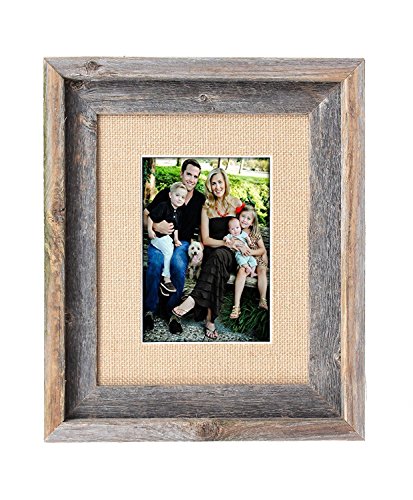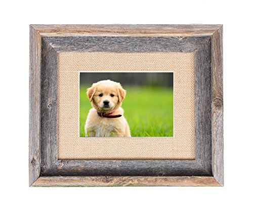 BarnwoodUSA 8 by 10 Inch Signature Picture Frame for 5 by 7 Inch Photos - 100% Reclaimed Wood, Burlap Mat