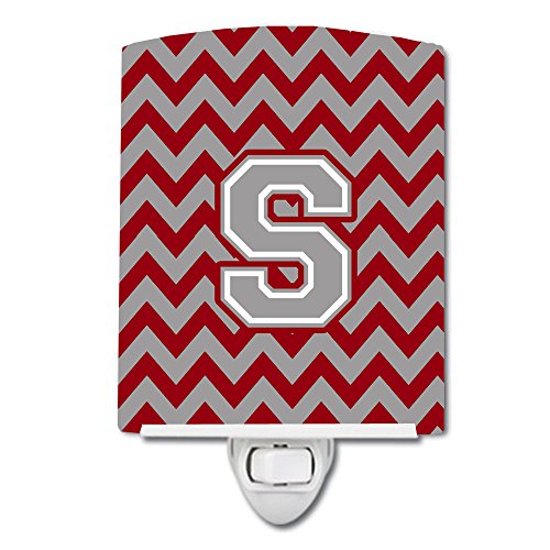 Caroline's Treasures Letter S Chevron Crimson and Grey Ceramic Night Light, 6 x 4", Multicolor
