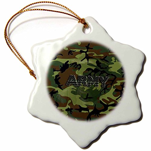 3dRose orn_130688_1 Woodland Green Camouflage with Flag Font-Army-Snowflake Ornament, 3-Inch, Porcelain