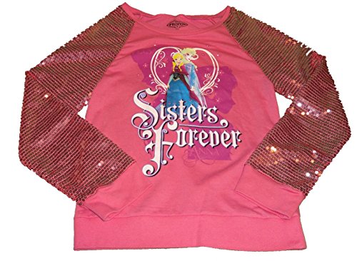 Celebrate the popular movie with the Disney Frozen Anna and Elsa Girls' Long-Sleeve sequin shirt. It's a super cute choice for a special occasion or for everyday wear. Girls can look extra cute wearing this shirt to school, on a play date or around home. The graphic on the front pictures the two sisters in a pretty pose with "Sister Forever printed across the bottom. Its sequin arms create a trendy and unique style that any girl will love. This item is both breathable and resilient.Feature