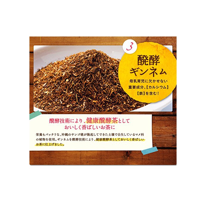 우롱차의 약50배나 되는 칼슘,철등의 미네랄을 포함하는 발효《긴네무》와,임신 중 산후의 체형 유지로 기쁜 검은 콩을 블렌드.