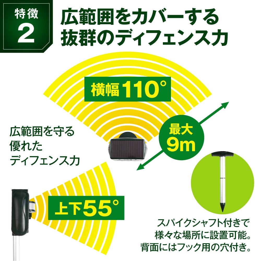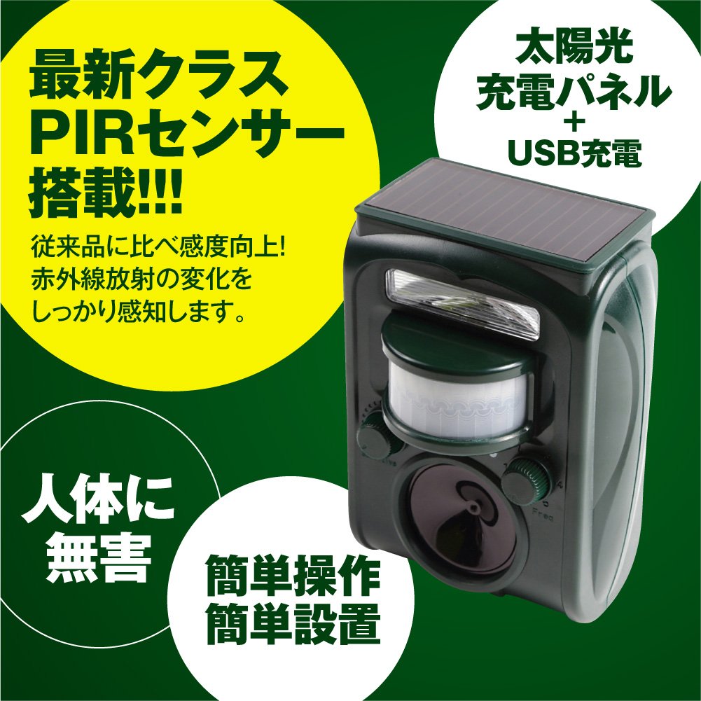 With this newest type cat, the animal repelling device can be adjusted according to various pests by 5 frequency control.