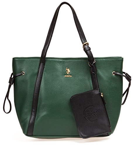 U.S. POLO ASSN. Women's Greenwich Color Block Mixed Media Tote Hunter Green/Black Tote