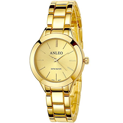 -. Title : ANLEOWATCH 1PCS Women Pure Color Dress Watches Stainless Steel Back Metal Strap Sport Wristwatch 6085-Gold