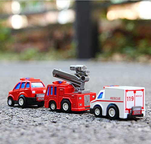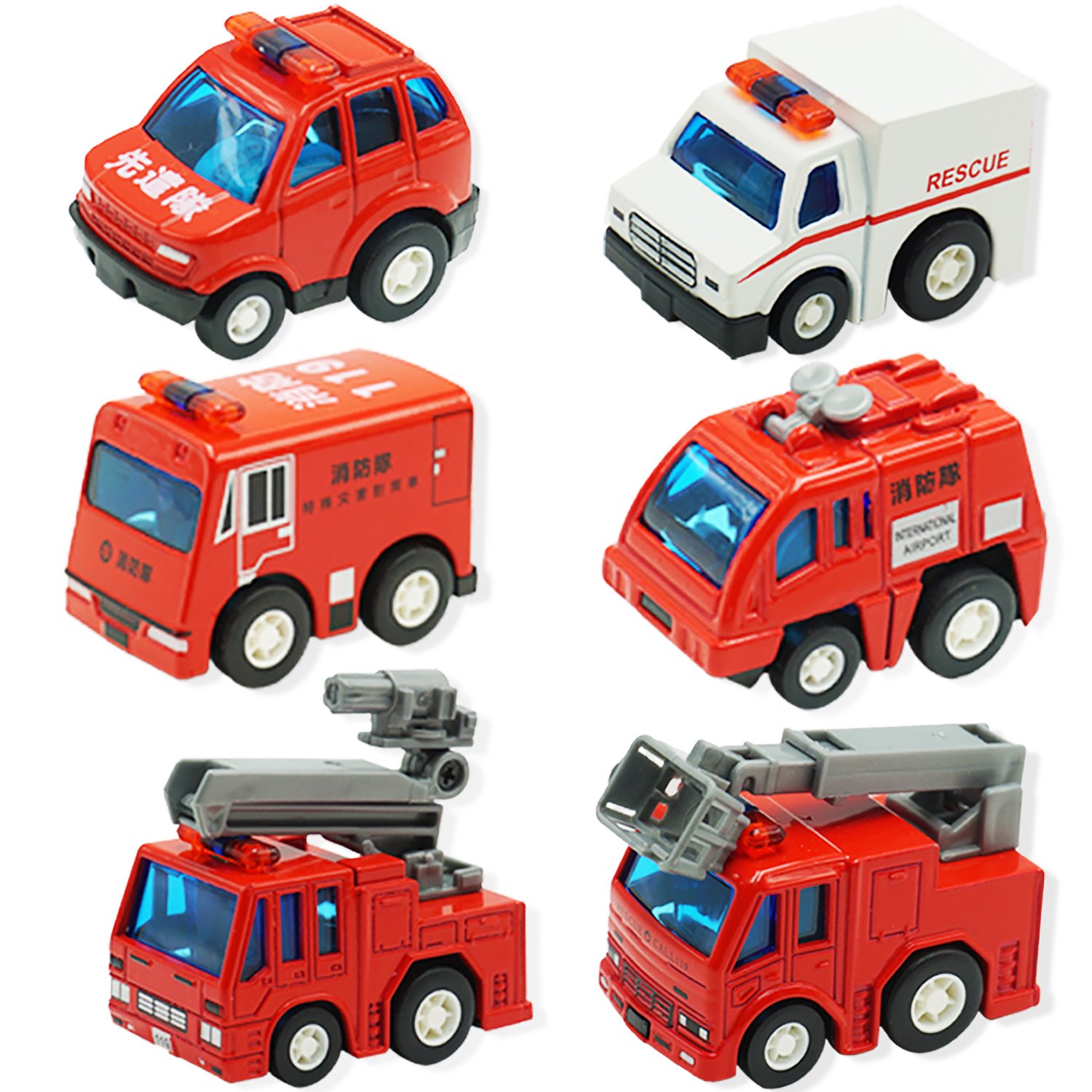 🚒 【セット内容】:はしご付き消防車・特殊災害対策消防車・先遣消防自動車・ポンプ消防車・照明消防車・救急車6タイプの緊急車両セットなので、消防署の行動現場を再現し、緊急の雰囲気を作って、お子様が絶対夢中になる!