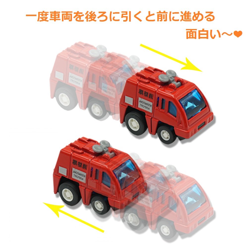🚒 【プルバックカー】:バッテリーは必要なく、一度車両を後ろに引くと前に進める面白さがたっぷりのプルバックカーです!走るスピードが速いので、遊ぶ時のテンションを上げることができ、家族と一緒に楽しく車遊びをしてみましょう。