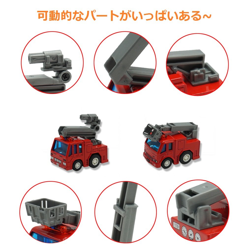 🚒 【特定の機能】:はしご付き消防車のは180度回転られるはしごが伸び缩みが自在、さらに90度立てることもでき。それに、ポンプ消防車が特殊装置があるし自由に高くのばることも可能。