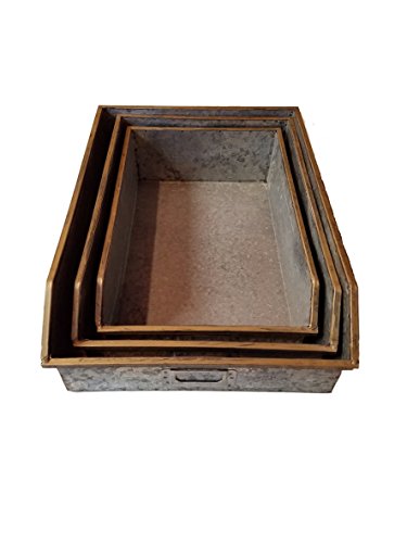 Galvanized Tin Nameplate Tray Organizer (Set of 3)