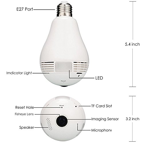 Esun 960P Hidden Light Bulb Panoramic 360 degree Wifi IP Video Panoramic HD Camera, with Two-way Audio, Alarm Notification, SD card slots (360° Camera)