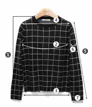 尺码 ①衣长 ②胸围 ③下摆围 ④肩宽 ⑤袖长 ⑥袖臂围 ⑦袖口围