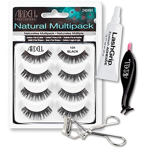Ardell Fake Eyelashes 101 Value Pack - Natural Multipack 101 (Black), LashGrip Strip Adhesive, Dual Lash Applicator, Cameo Eyelash Curler - Everything You Need...