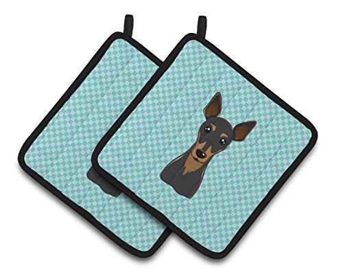 Caroline's Treasures Checkerboard Blue Min Pin Pair of Pot Holders BB1178PTHD, 7.5HX7.5W, Multicolor