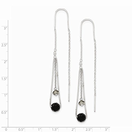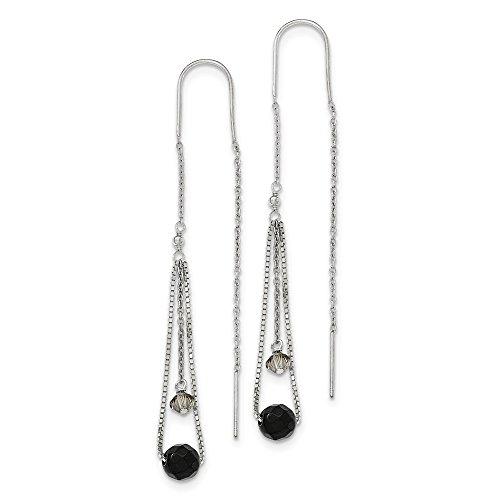 ICECARATS DESIGNER JEWELRY 925 STERLING SILVER BLACK TURMARINE CRYSTAL TASSEL STRING THREADER EARRINGS