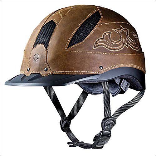 (Troxel)/Equestrian Sports/Protective Gear/DIRECT FROM USA/LARGE TROXEL LOW PROFILE CHENYENNE BROWN WESTERN RIDING HELMET W/ LEATHER FINISH