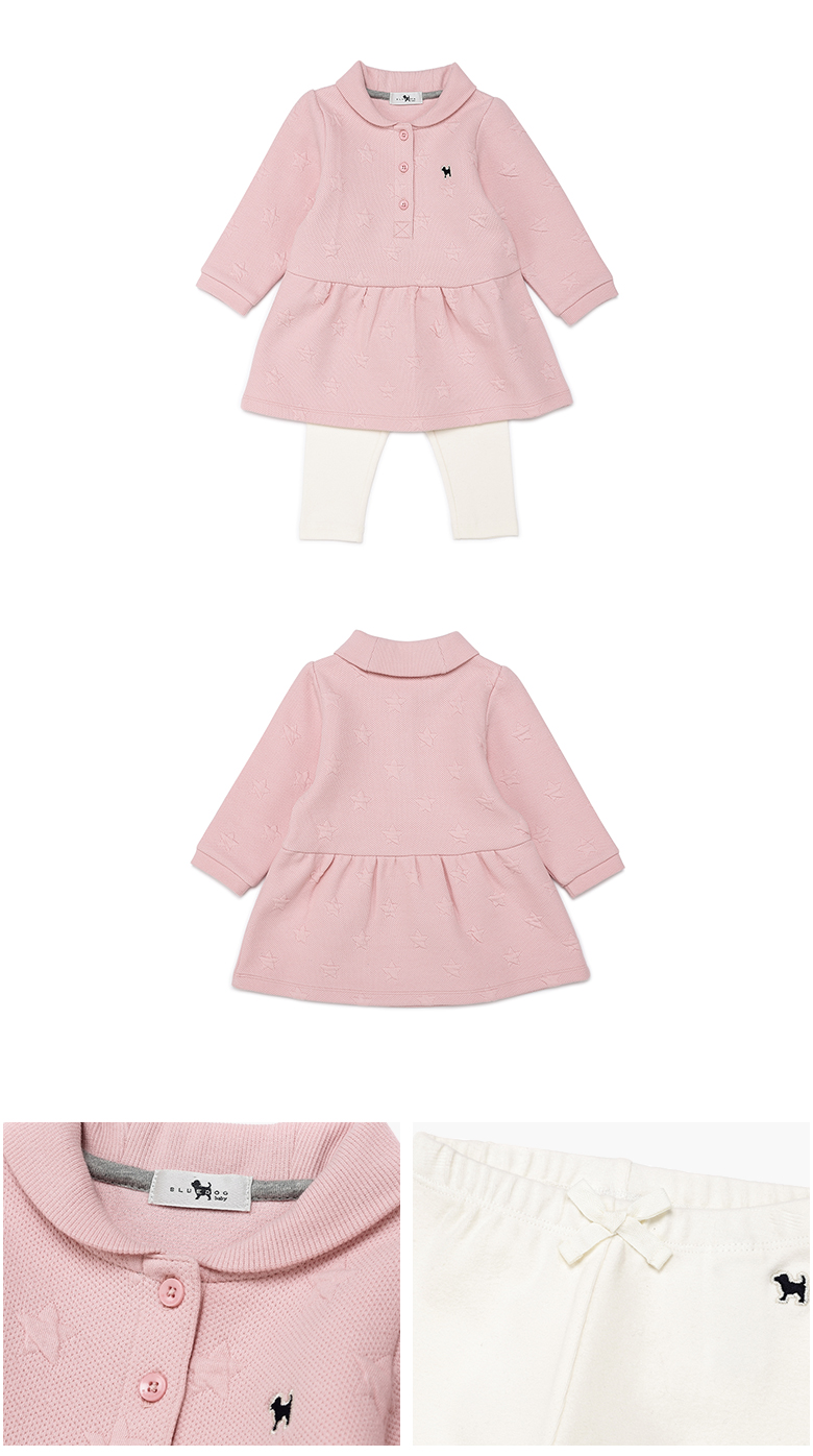 _귀여운 별모양 엠보싱이 들어간 자가드소재의 상하복입니다.