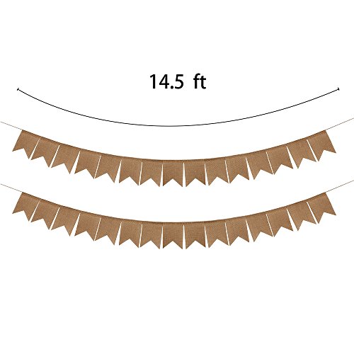 -. Feature : To create various theme party:nautical party,christening party,woodland creatures baby shower party decorations,gender reveal party,baseball party,safari party,bear party,jungle theme party,elephant party,western party,and all kinds of party you can think of. / Various DIY: You can use paint, fabric or cardboard in the blank state to DIY any message (You can see details in product description) / Package: 30pcs swallow-tailed burlap banners stringed by jute rope / Using occasion: Perfect for kids party, wedding, birthday, baby shower, country party, christening party decorations,celebrations,and decorations of any occasion / Material: Our all materials were tested and ,100% natural jute