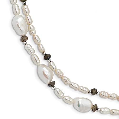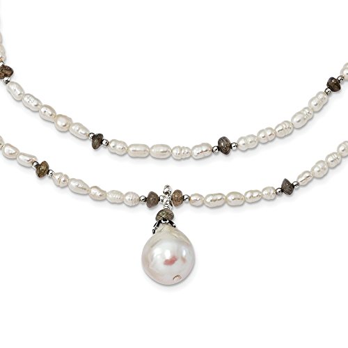 Solid 925 Sterling Silver Labradorite & FW Cultured Pearl 2Strand w2in Ext Necklace (4.64mm)