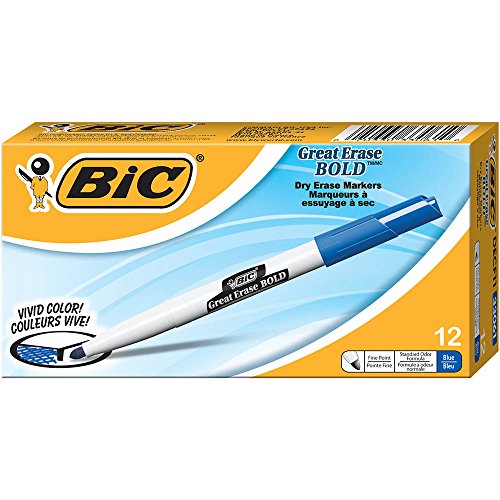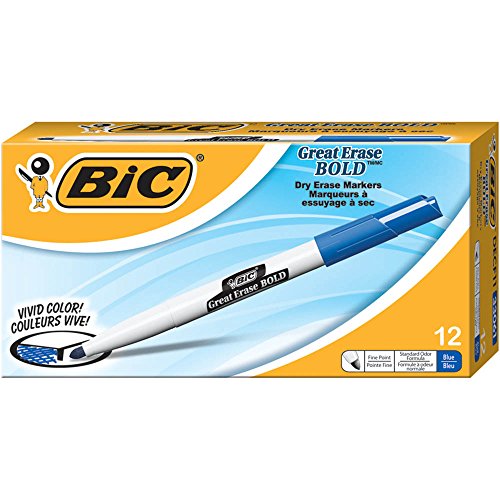BIC Great Bold Dry Erase Marker, Pocket Fine Point Dozen Box, Blue (DECF11-BLU)