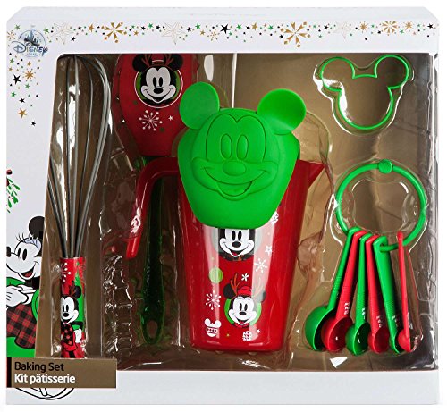 [Product Information]- Set includes measuring cup, baking spatula, whisk, 6 measuring spoons on ring, silicone pot holder, and Mickey icon cookie cutter