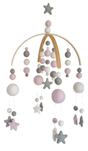 We hand make every mobile here in New Zealand and give each individual attention to make sure you get the best quality possible. With clever, delightful designs and gorgeous color combinations our mobiles will not only make the perfect addition to the nursery but will help provide needed stimulation for your child's development. Each felt ball and shape is made from 100% New Zealand wool. Made for us in Nepal each ball is individually rolled and shaped to our specifications so you're assured of a unique product and design. Because our felt balls are of high quality they will hold their position on the string unless you choose to move them and with the ability to move the felt balls and shapes you can even create your own twist on our designer looks. Each mobile measures 25cm in diameter across and has an average drop of 35-40cm from the arch, with an approx length of 1.5 metres of string for hanging so you can position it perfectly over the bassinet, bed or crib. Plus your happiness is Guaranteed! Even though this is a handmade product and you can expect some variations we want to make sure you love everything about your purchase. Our manufacturers guarantee is simple. Not satisfied? Get your money back or a replacement. No questions asked.