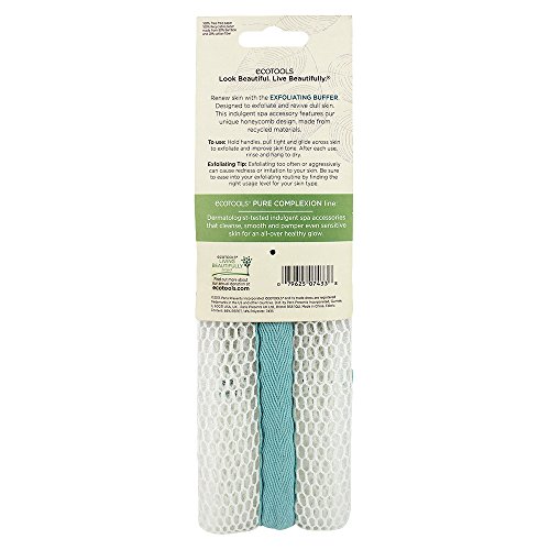- Renew skin with the EXFOLIATING BUFFER. Designed to exfoliate and revive dull skin, this indulgent spa accessory features our unique honeycomb design, made from recycled materials. Extra Long for hard-to-reach areas. After each use, rinse and hang to dry.