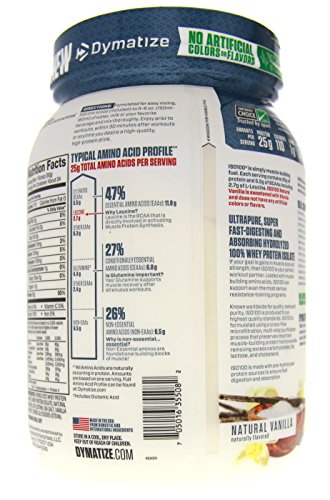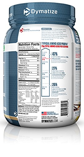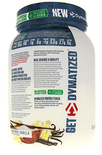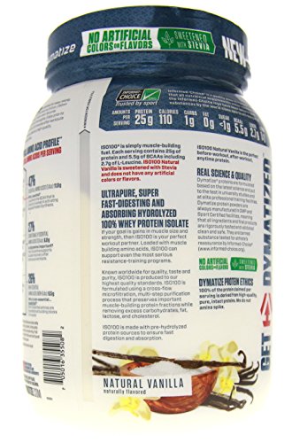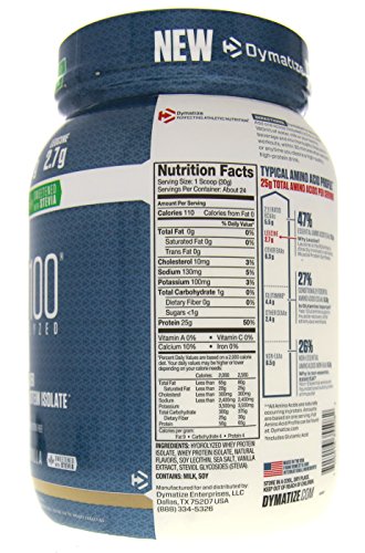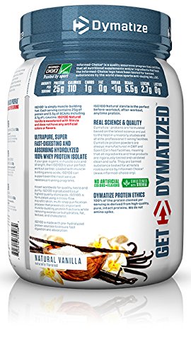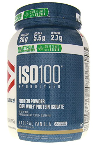 ReleaseDate : 2017-07-17 Studio : Dymatize Enterprises, Inc Publisher : Dymatize Enterprises, Inc Binding : Health and Beauty Product Description ISO 100 is simply muscle-building fuel. Each serving contains 25 grams of protein and 5.5g of BCAAs including 2.7g of L-Leucine. Known worldwide for quality, taste and purity, ISO100 is produced to our highest quality standards. ISO100 is formulated using a cross-flow micro filtration, multi-step purification process that preserves important muscle-building protein fractions while removing excess carbohydrates, fat, lactose and cholesterol. ISO100 is made with pre-hydrolyzed protein sources to ensure fast digestion and absorption. 0