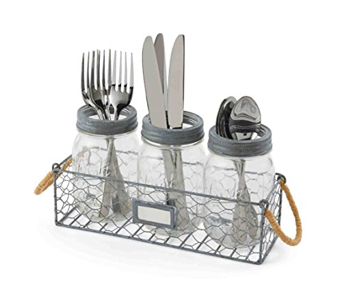 [Product Information]- Set includes a chicken wire basket with twine wrapped handles and holds three galvanized metal rimmed glass "Fresh" preserve jars