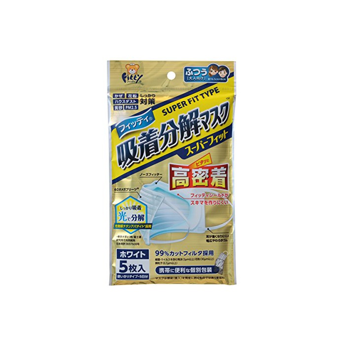 원본상품명: (PM2.5??)フィッティ 吸着分解マスクス?パ?フィット ふつうサイズ ホワイト 5枚入