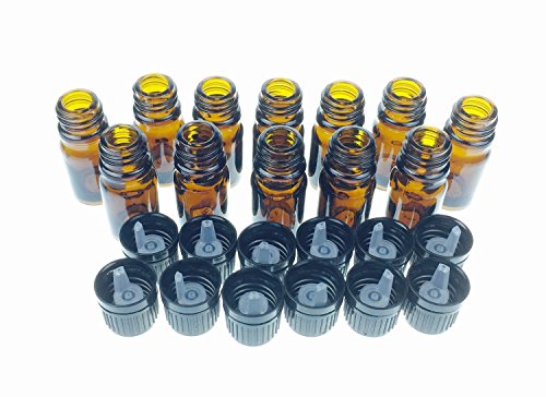 SUNREEK™5 Ml Amber Glass Bottle W/euro Dropper. Black Cap. 15 Pack