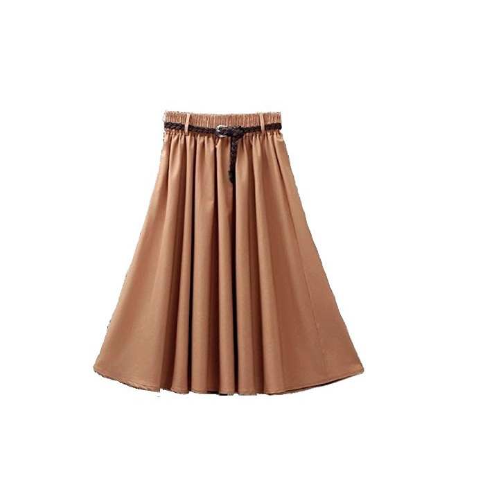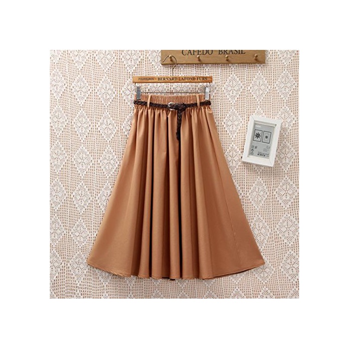 원본상품명: レディス スカト ひざ丈 フレア 夏 ゴム シンプル きれいめ (B ブラウン ベルト付)