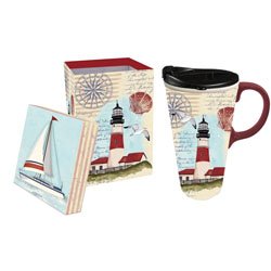 Cypress Home's Ceramic Travel Coffee Mug or Tea Cup is the perfect everyday beverage holder - The cup is adorned with charming coastal artwork - Packaged in a coordinating gift box, making it a great present for family and friends