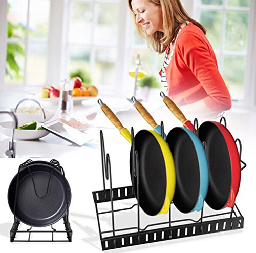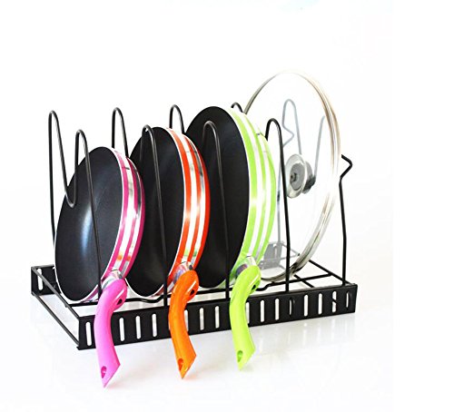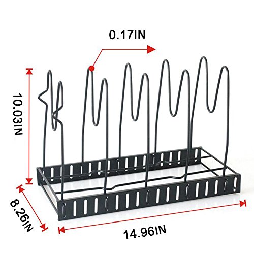 Studio : Meleg Otthon Publisher : Meleg Otthon Product Description Meleg Otthon pot organizer makes you love your kitchen! Material: wrought iron coating material Size: 14.96 IN * 8.26 IN * 10.03 IN Color: black Surface spray treatment can prevent the pot from being scratched or vanished. The pot organizer can be used to store various kinds of cooking utensils, such as pot, pan, lid, cutting board, grille, splash screen The pan holder is perfect for space management , such as a smaller or busy kitchen, as well as suitable for counters, cabinets or even under the sinks to reduce messiness .