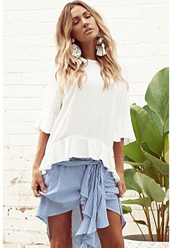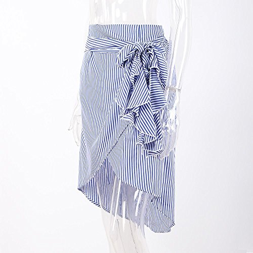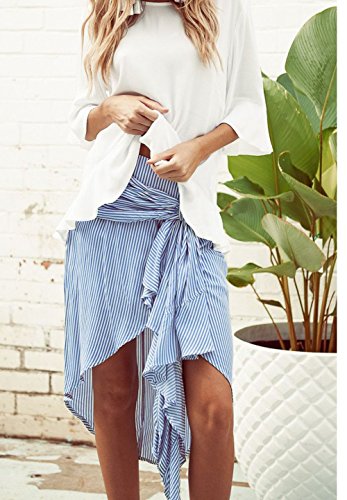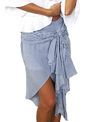 Zhaoyun Womens Stripe Tie Up Ruffles Irregular Summer Beach Casual Flare Madi Skirt